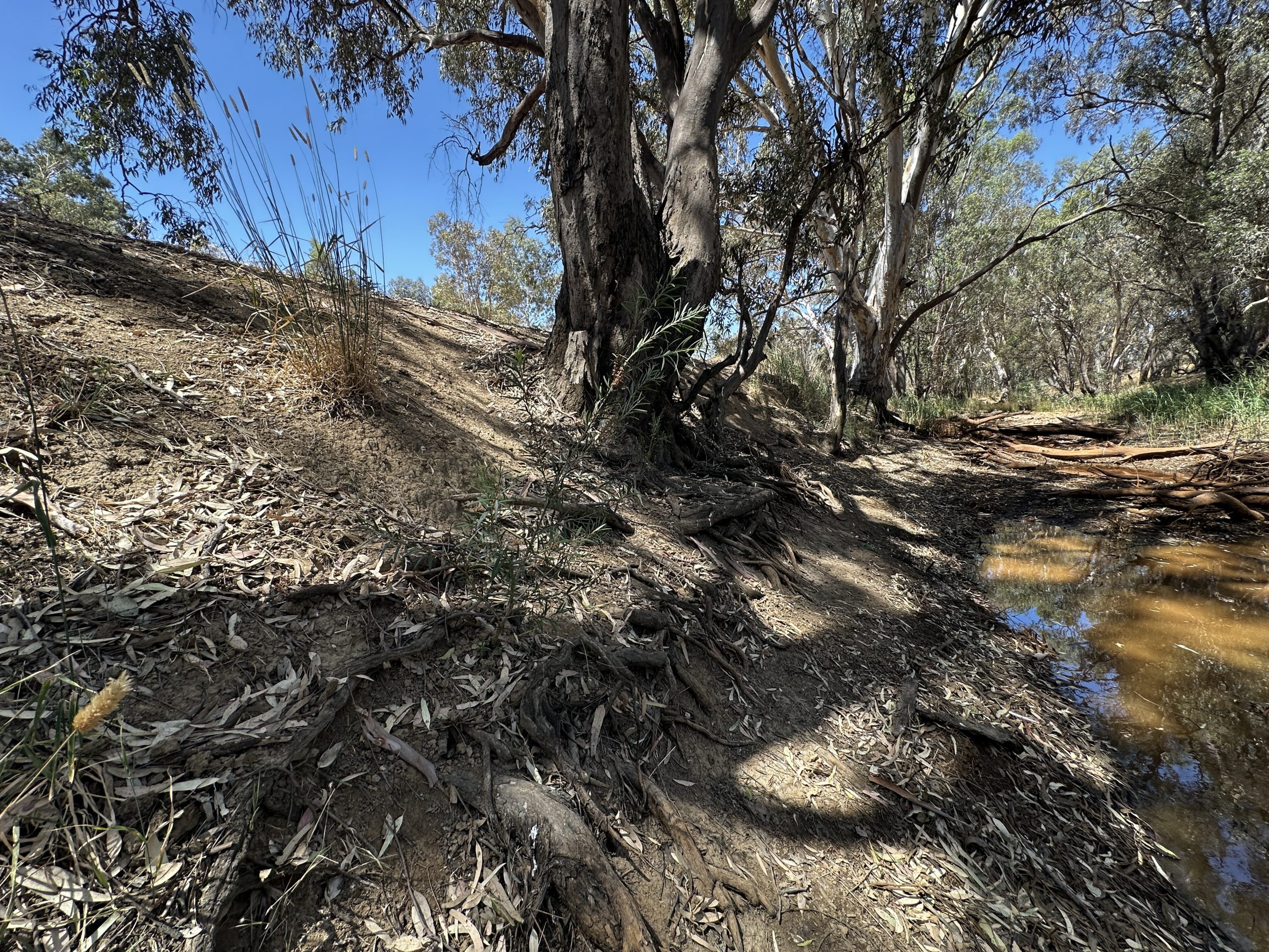 Nonetheless, those plants that have survived – around 40-50%of them in some cases – are now starting to perform their roles of holding soils together and providing food and shelter for small birds and insects. Down by the dam, where eroding inlets and walls have been a major issue, the wattles and eucalypts that were planted over the last two years or so have started to provide shade as well, which will in turn support the return of native grasses and herbaceous plants. Meanwhile, the Callistemons, Melaleucas, and tea-trees that were put in at the edge of the high-water mark have begun to send their roots deep into the bank to help bind the soil together and stop further erosion.