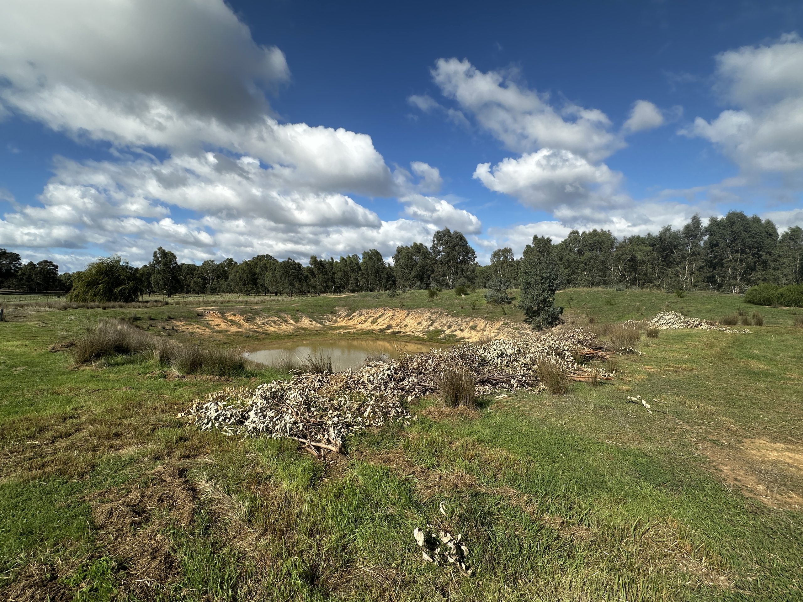 The dam itself isn’t great – it’s built in an old creek bed that has gravelly soils that leech the water out profusely. It’s also completely exposed to the elements, meaning it loses a lot of water through wind and solar evaporation. The hope is that if we can plant the edges up a bit with shrubs that will shield it from the wind, we might be able to keep water in it for longer. Eventually we’ll probably have to get the dam re-dug and re-lined, but in the meantime this should hopefully see it taking longer to dry out than it currently does.